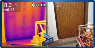 Na zdjęciu poniżej widać mostek termiczny na obrzeżach framugi drzwi. Problem strat ciepła związany jest najczęściej z zużyciem uszczelek