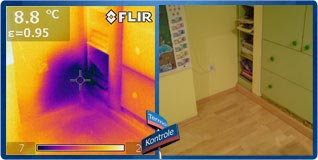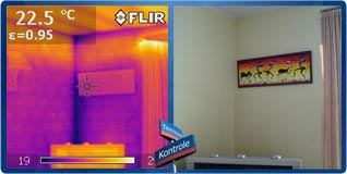 na powierzchni ściany nad listwą podłogową i w konsekwencji powstawania pleśni.Kontrola termowizyjna wskaże miejsca pogorszonej izolacji i zwiększonych strat ciepła. Wskaże mostki termiczne, błędy wykonawcze, luki w ciągłości ocieplenia, ubytki w elewacji. Każda wada izolacji – projektowa, wykonawcza, powykonawcza – zwiększa straty ciepła i koszty ogrzewania.