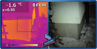 Często spotykanym podczas kontroli termowizyjnej skutkiem błędów w izolacji fundamentów jest powstawanie wewnątrz pomieszczeń zawilgocenia, czasem także zagrzybienia,