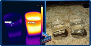 Powyżej: 2 szklanki z identycznie wyglądającą (gołym okiem) wodą. Jedna z zimną, a druga z gorącą wodą.