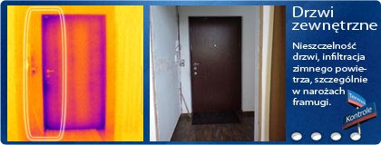Na zdjęciu poniżej widać mostek termiczny na obrzeżach framugi drzwi. Problem strat ciepła związany jest najczęściej z zużyciem uszczelek