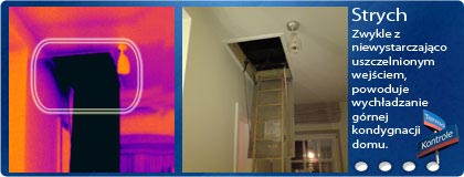 Strychy budowane są zwykle jako pomieszczenia o obniżonej izolacyjności cieplnej. Widoczna czasem podczas kontroli podwyższona temperatura ścian strychów może być jednak skutkiem wad wykonawczych izolacji kładzionej na stropach.