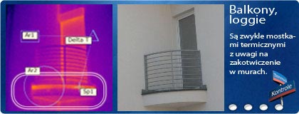 Kontrola balkonów i loggi powinna opierać się na znajomości ich konstrukcji i uwzględniać porównanie z temperaturą innych balkonów i loggi na tej samej ścianie lub na sąsiednim budynku.